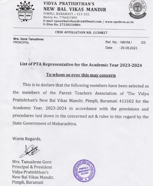 Vice President: Mrs. Sujata Pawar (Parent Representative of Std IX)